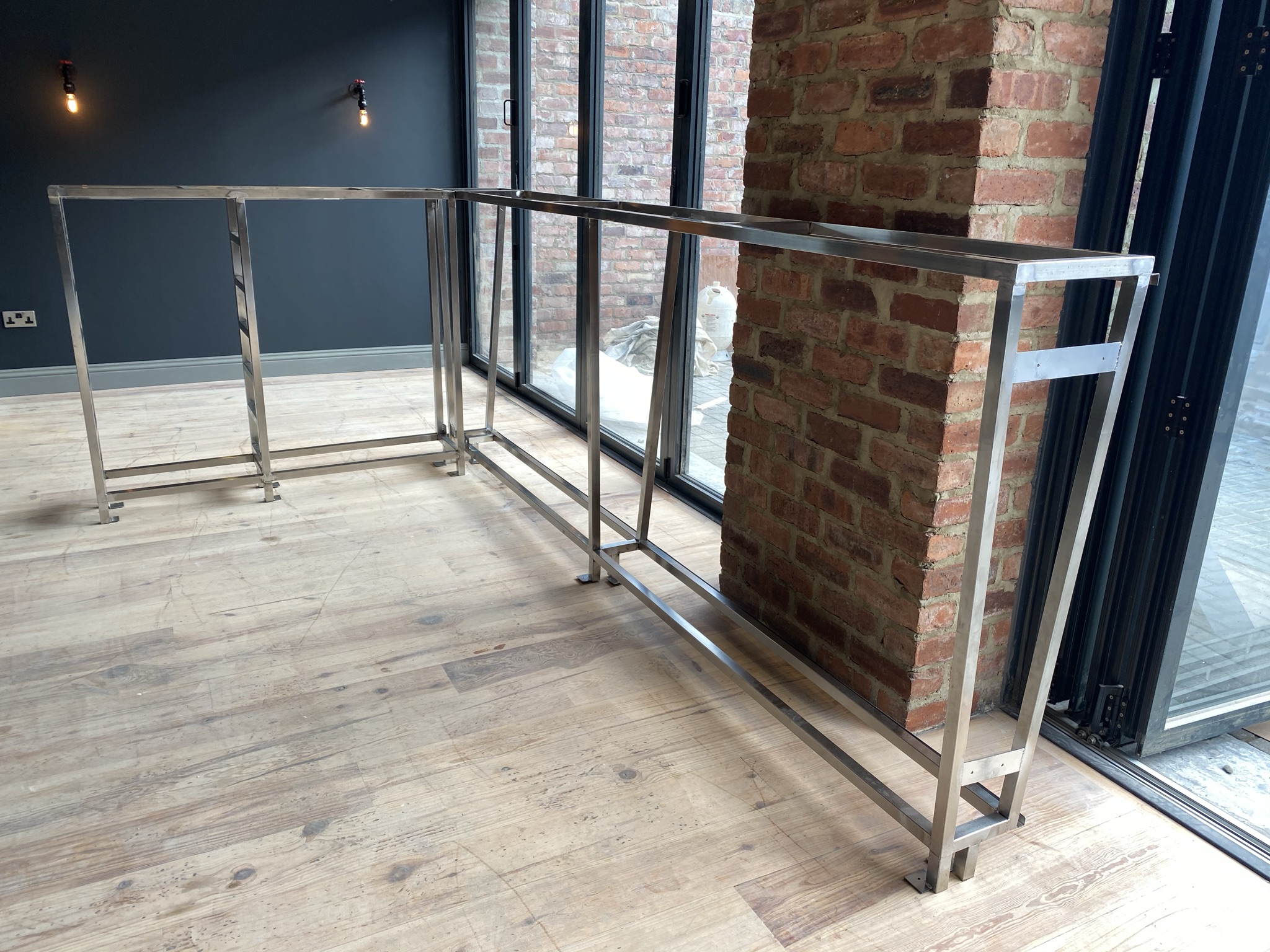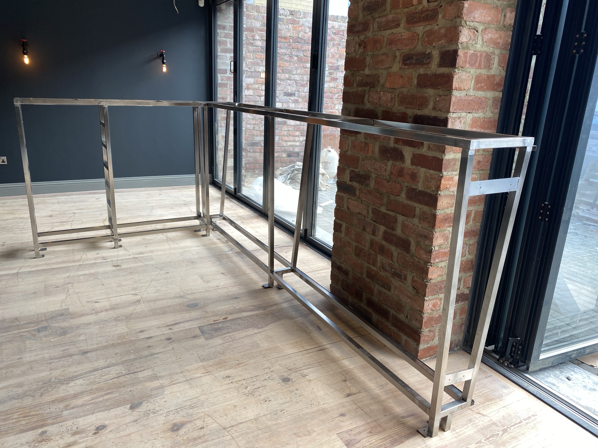• Industrial Style: The bar counter embodies an industrial aesthetic, utilizing a combination of chromed metal structures and black granite for the countertop. The choice of materials highlights a sleek, modern look that balances elegance with practicality.