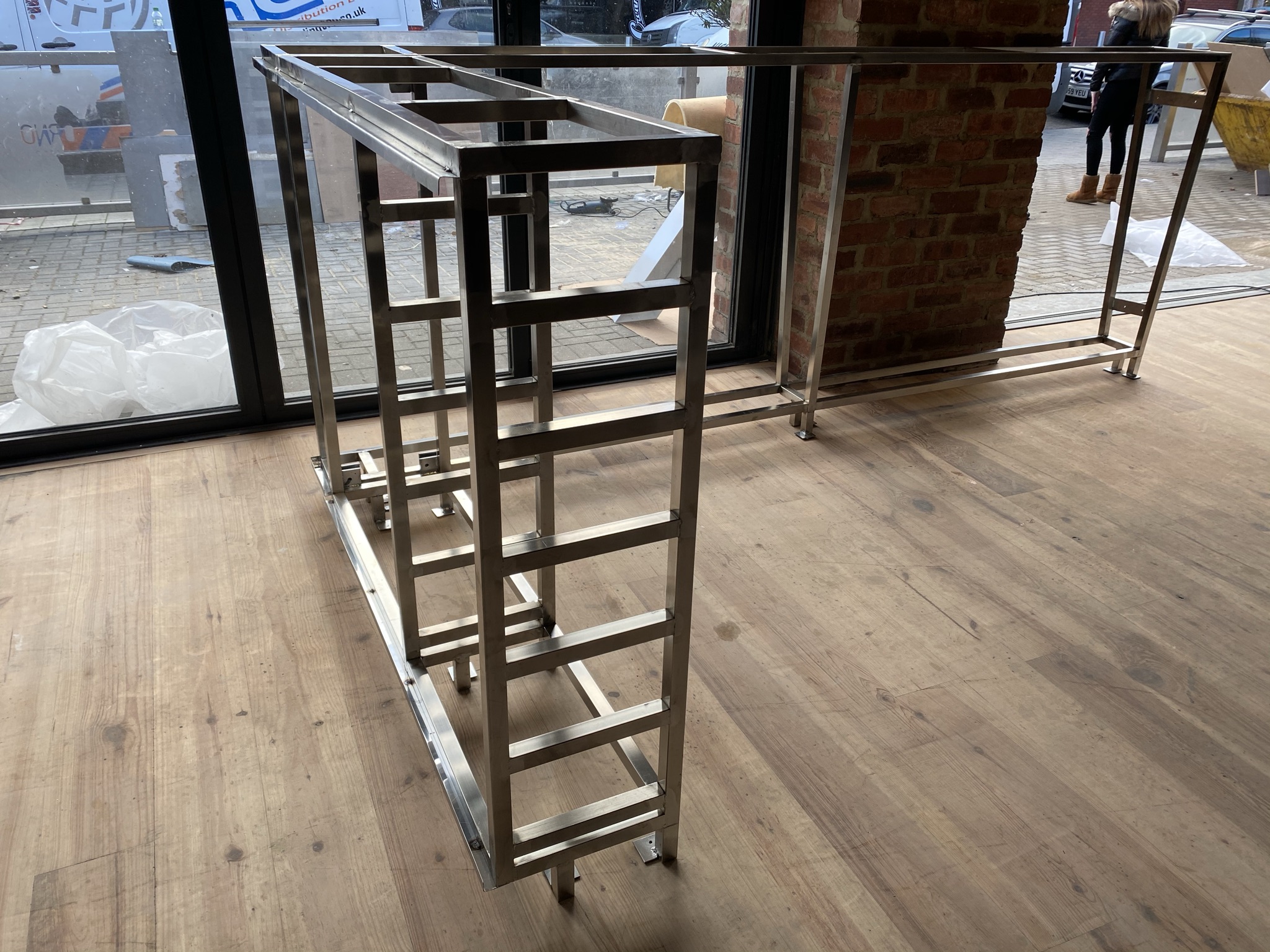 • Black Granite: Consistent with the bar counter, the black granite workbench unifies the aesthetic and provides a durable, easy-to-maintain surface.
